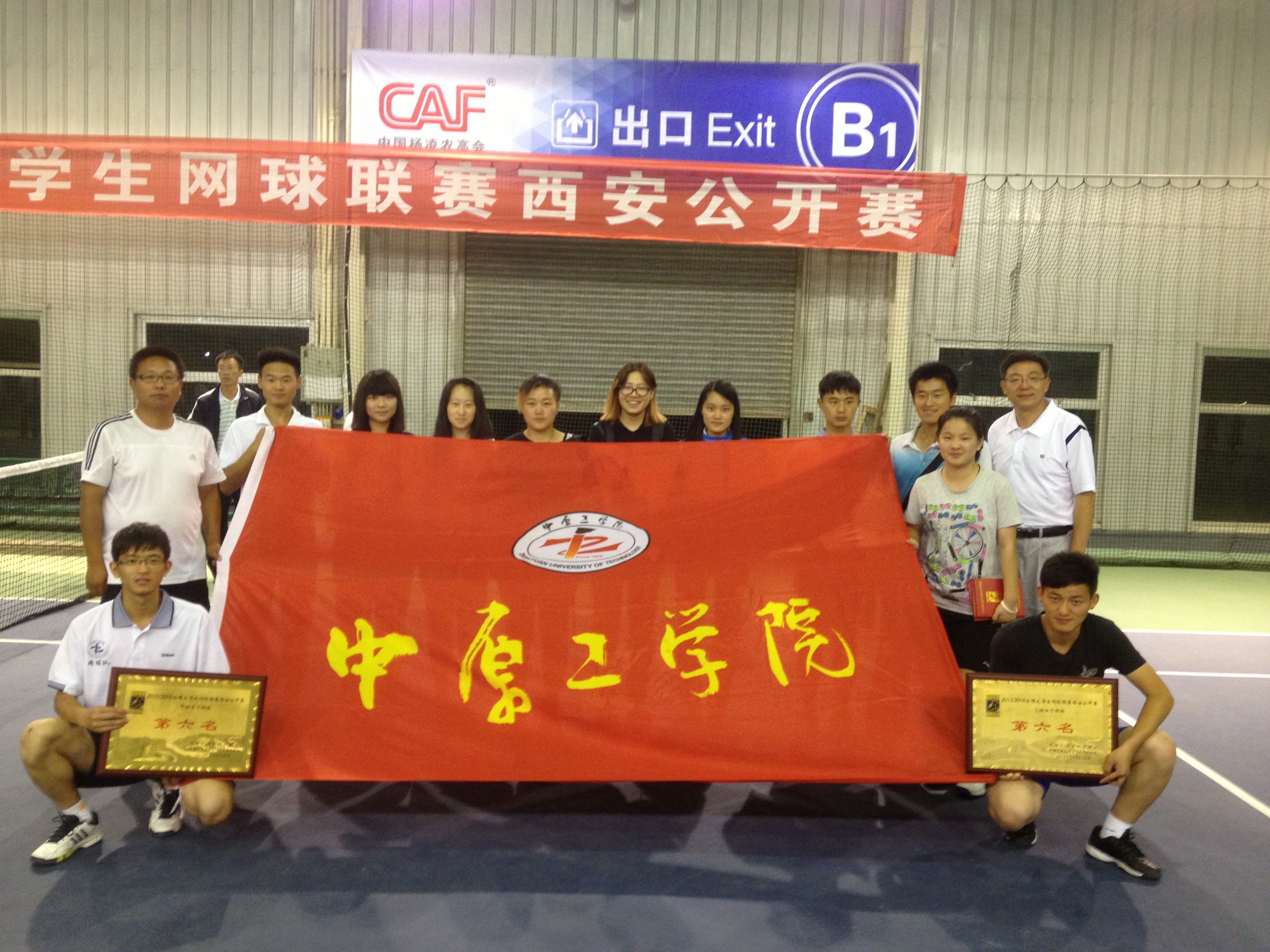 在日前结束的2013-1014全国大学生网球联赛西安赛区公开赛中,以田朝辉、蔡文峰为教练的我校学生网球队荣获甲组女子团体第五名、甲组男子团体第六名、乙组女子团体第六名好成绩。