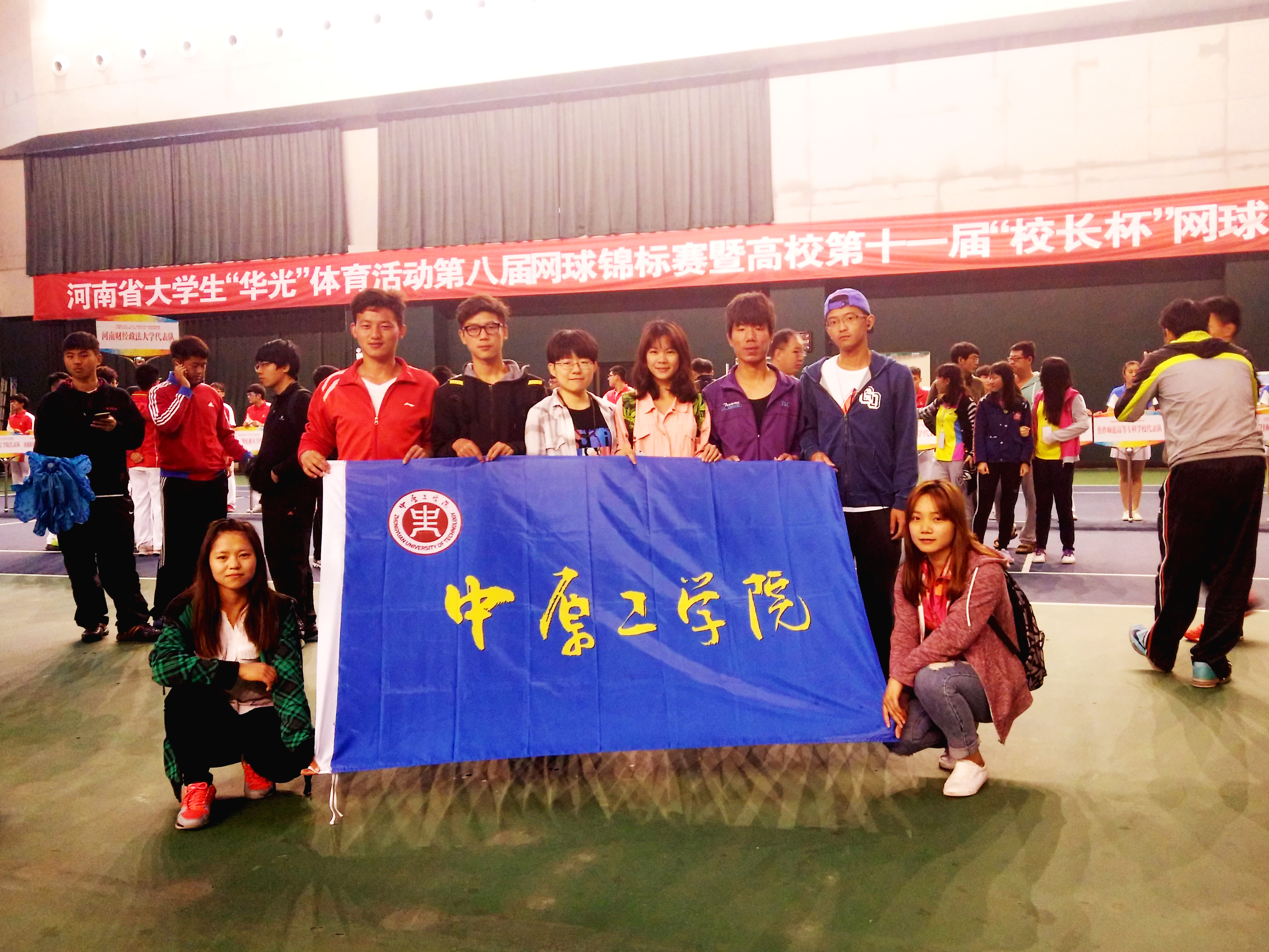 5月16日,由我校男女共8名运动员组成的网球队在教练员田朝辉、蔡文锋的率领下,参加了河南省大学生“华光”体育活动第八届网球锦标赛普通甲组竞赛,经过与各参赛队的激烈交锋,我校网球代表队最终荣获男子甲组团体冠军、女子甲组团体第三名。