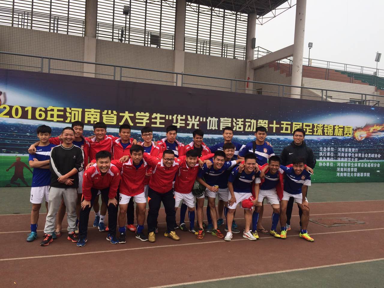 日前,2016年河南省大学生“华光”体育活动第十五届足球锦标赛在河南师范大学闭幕,以申彦华、翟奕轩为教练员的我校学生男子足球队,经过多轮角逐,最终点球惜败,获普通组(甲组)第四名的好成绩。