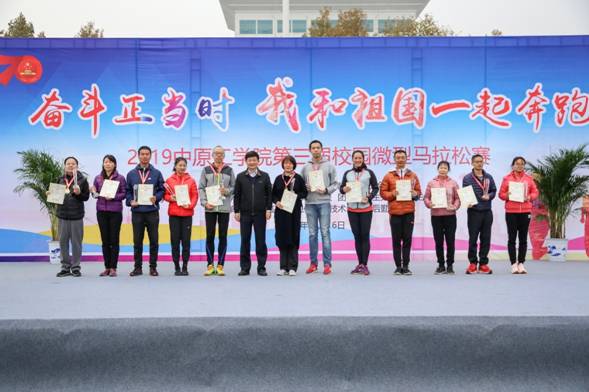 校党委副书记、工会主席,团委副书记杨为学,学生处副处长李士杰分别为为教工各组别前3名及学生男子组、学生女子组前10名的选手颁发证书和奖杯。