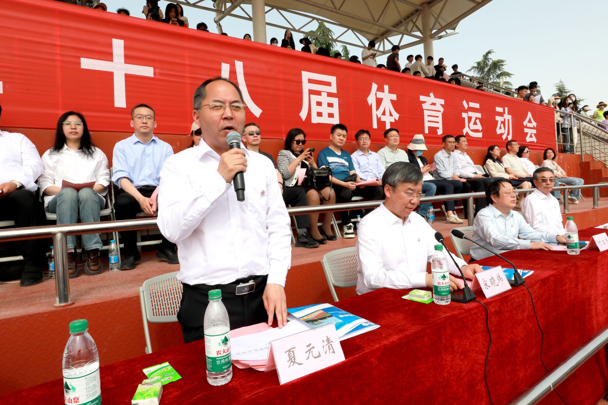 夏元清致开幕辞并宣布运动会开幕。他指出,体育承载着健康、团结、拼搏与超越的精神,本届运动会在学校喜迎建校70周年、筹建河南电子科技大学和申报博士授权点的关键时期举办,对凝聚发展合力意义重大。希望全校师生以运动会为契机,弘扬团结奋进、勇攀高峰的体育精神,在“电子信息+”特色发展的新征程上再创佳绩。