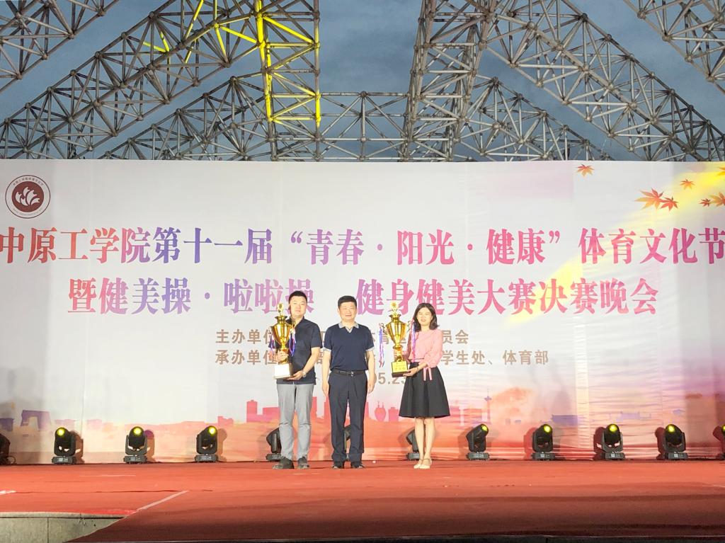 晚会伊始,校党委副书记分别为获得我校2018年度学生群众性体育活动积分A组、B组第一名的建筑工程学院、能源与环境学院颁发“中工杯”奖杯。