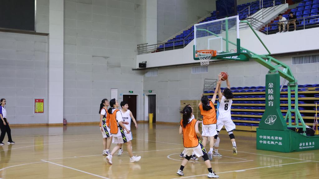 决赛现场气氛热烈,同学们期待已久的冠亚军之战终于开始。比赛中,队员们全力以赴、攻守兼备、越战越勇,展现了他们良好的心理素质。现场的同学们也情绪高涨,摇旗呐喊,为自己支持的队伍加油打气。赛场上的队伍双方拼抢激烈,运球、传球、投篮动作潇洒,展现出中工学子顽强的拼搏精神和较高的竞技水平。