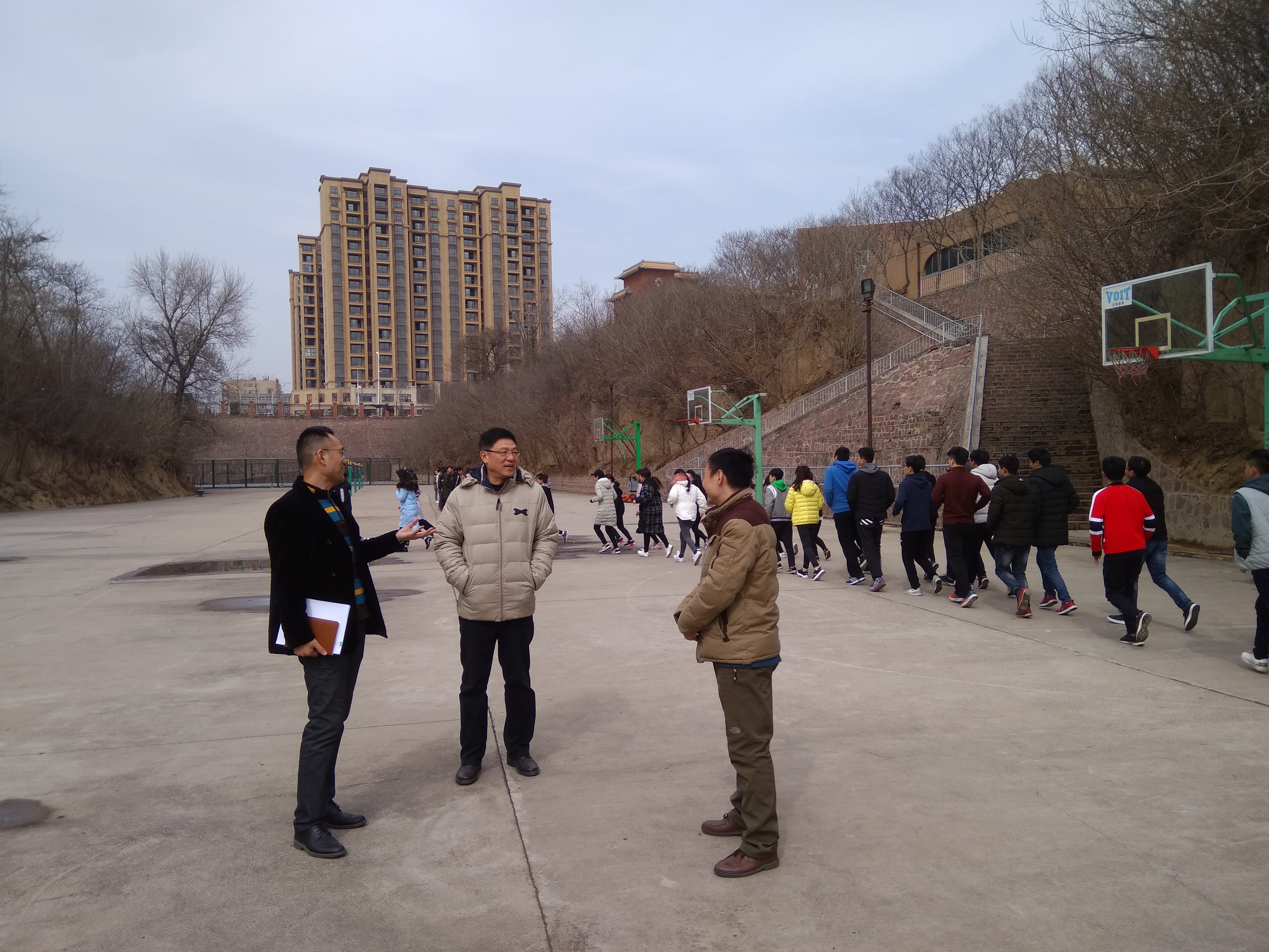 3月5日下午,新学期开学之际,体育教学部主任魏建、副主任李学砦、督导专家赵聂、办公室主任李涛等人对新学期体育课开课情况进行现场检查。