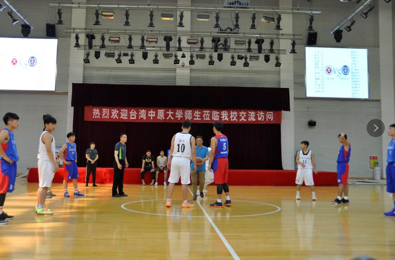 5月8日下午,台湾中原大学男子篮球队与我校男子篮球队在龙湖校区体育馆一楼上演了一场精彩的篮球友谊赛。校党委副书记刘志刚出席比赛开幕式,并为比赛执行跳球。开幕式由对外合作与交流办公室主任谭恒主持,台湾中原大学两岸交流处处长许世哲和我校体育教学部主任魏建分别致辞。台湾中原大学体育室主任陈克舟博士、篮球队主教练陈建廷教授、顾问车宜静女士、资深顾问游淽琁女士以及我校对外合作与交流办公室副主任涂晓伟,体育教学部办公室主任李涛、男篮主教练王鹏、篮球国家级裁判张冯教师参加了开幕式。