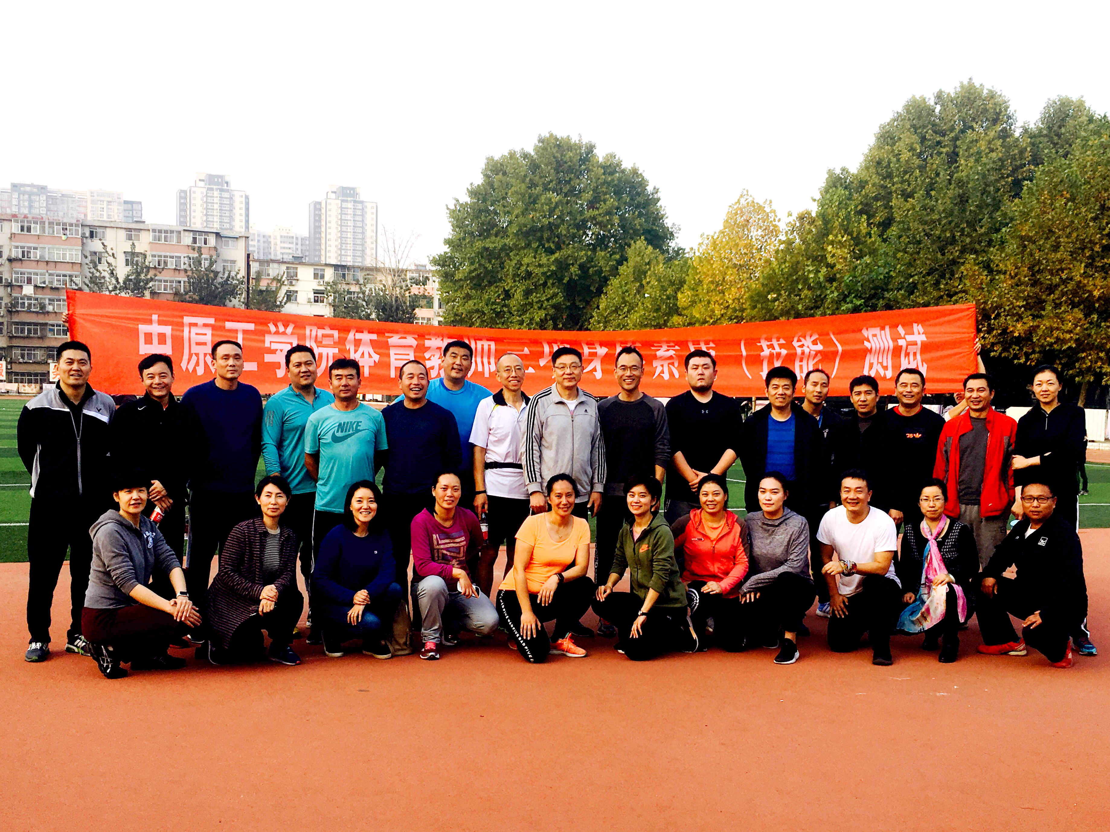 2017年10月26日15:30,体育教学部在北校区运动场组织了第四届体育教师“三项身体素质”健康测试活动,全体体育教师参加。