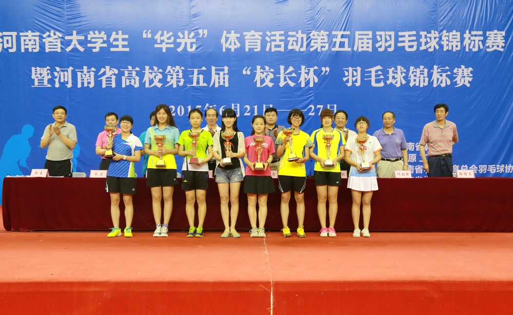 6月21日至26日,河南省大学生“华光”体育活动第5届羽毛球锦标赛在我校体育馆隆重举行,河南省教育厅体卫艺处副调研员高翔、河南省学生体育总会副主席、高校体协主席林克明、河南省人大常委会委员、省政府参事王晏,我校党委书记、河南省学生羽毛球协会主席、党委副书记刘志刚、副院长曹健等参加了开幕式和闭幕式。来自省内郑州大学、河南大学、英国威廉集团等31支代表队,共283名教练员和运动员参加了比赛,参赛规模为本项赛事历史之最。