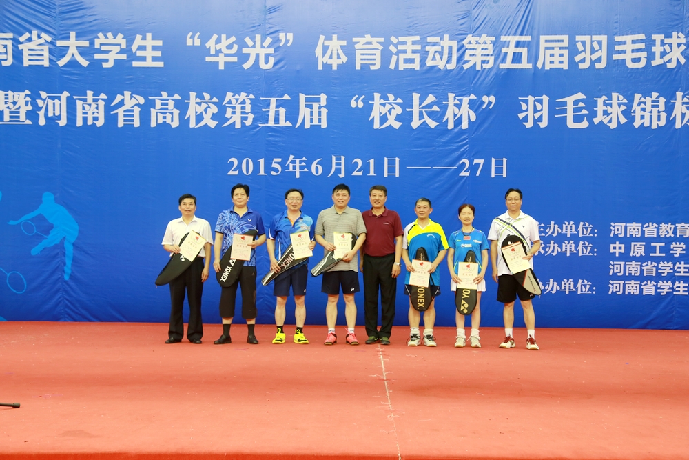 6月27日,河南省高校第5届“校长杯”羽毛球锦标赛在我校体育馆隆重举行,省教育厅体卫艺处处长郭蔚蔚、体卫艺处副调研员高翔、省体育局社会体育管理中心书记刘保祥、省高校体协常委何祖新,我校党委书记、省学生羽毛球协会主席、院长俞海洛、副院长曹健参加了开幕式和闭幕式。共有来自省内河南工业大学、华北水利水电大学等25支代表队参加了比赛,参赛规模为本项赛事历史之最。省教育厅体卫艺处副调研员高翔主持开幕式。校党委书记在欢迎词中感谢教育厅及兄弟院校的信任和支持,希望参赛的全体运动员赛出水平、赛出友谊、共同促进各院校间的交流,繁荣高校校园体育文化。省教育厅体卫艺处处长郭蔚蔚在讲话中感谢承办单位的辛勤工作,预祝比赛取得成功,并宣布比赛开幕。经过一天激烈的比赛,我校党委书记、俞海洛、河南建筑职业技术学院吴承霞、郑州财税金融职业学院刘盘根等获得双打前三名;我校黄健、河南教育学院郭富华、我校曹健获得女单前三名。本次比赛由省教育厅主办,省学生体育总会羽毛球协会和我校共同承办。