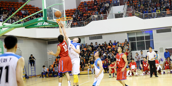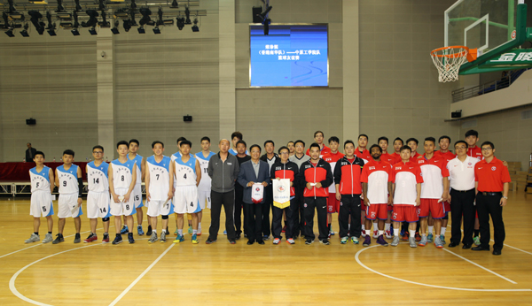4月25日下午4点,由维珍妮国际有限公司洪游奕董事长率领的香港南华队和我校篮球队友谊赛在体育馆篮球馆举行。校党委副书记刘志刚和洪游奕董事长代表双方球队交换了队旗并观看了比赛。