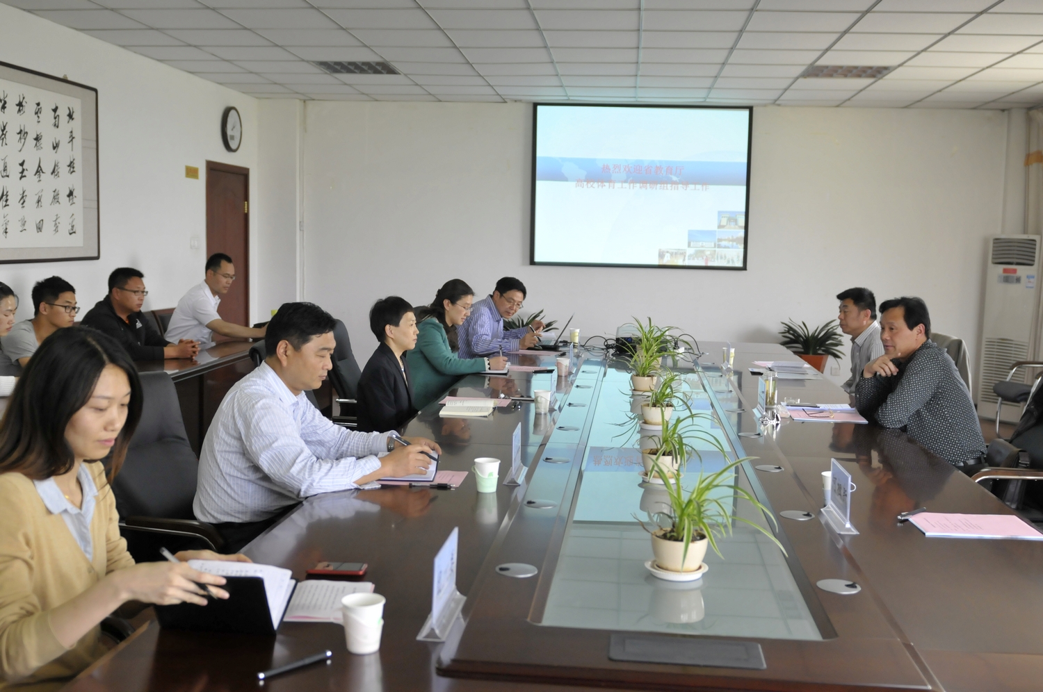 4月27日,以河南省教育厅体卫艺教处处长郭蔚蔚为组长的高校体育工作组莅临我校,就高校体育工作进行专题调研,副院长曹健主持座谈会,教务处、学生处、团委、体育教学部负责人和部分体育教师、校学生会williamhill英国同学参加了会议。曹健副院长代表学校对工作组的到来,表示诚挚的欢迎,介绍了我校近年来的建设与发展情况,学校体育工作理念及开展情况;体育教学部主任赵聂结合文件要求,就我校体育工作理念设计、《国家学生体质健康标准》测试、大学生课余体育锻炼、体育教学,以及中发〔2007〕7号、豫发〔2007〕30号、国办发〔2012〕53号文件的落实措施及办法等,向工作组做了清晰、全面的汇报。会上,工作组还与参会人员进行了热烈的座谈与交流,发放了调查问卷;会后,工作组一行实地考察了我校新落成并已投入使用的体育馆,对我校体育工作进行了全方位的调研和指导。