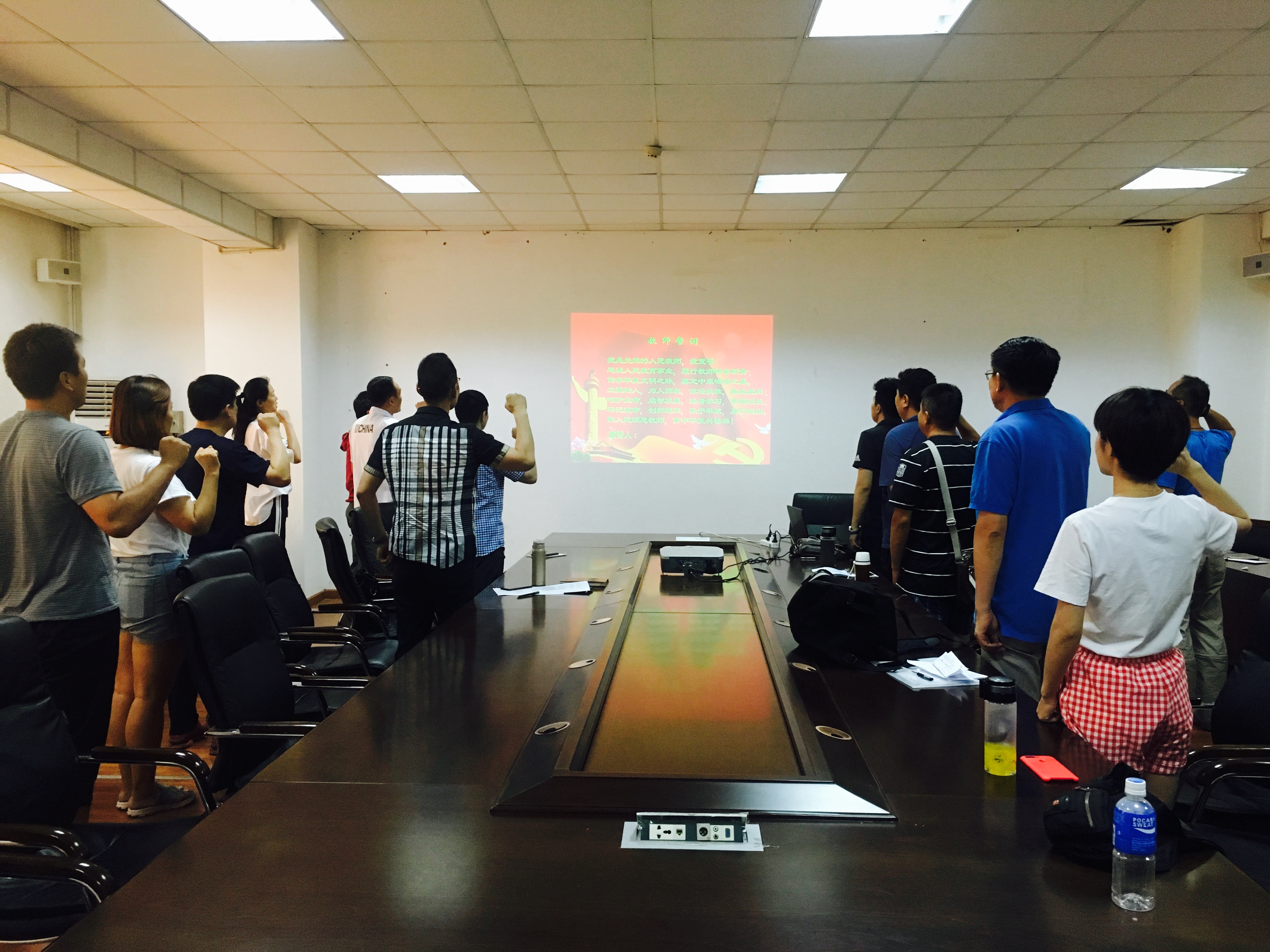 最后,党支部书记魏建带领全体教职工重新进行教师宣誓,重温教师誓词,更加坚定了我部门教师立德树人、为人师表、依法执教、爱岗敬业的要求,呵护生命、启智求真、终身学习、幸福成长的使命,创新进取、乐于奉献、勇于担当的责任。
