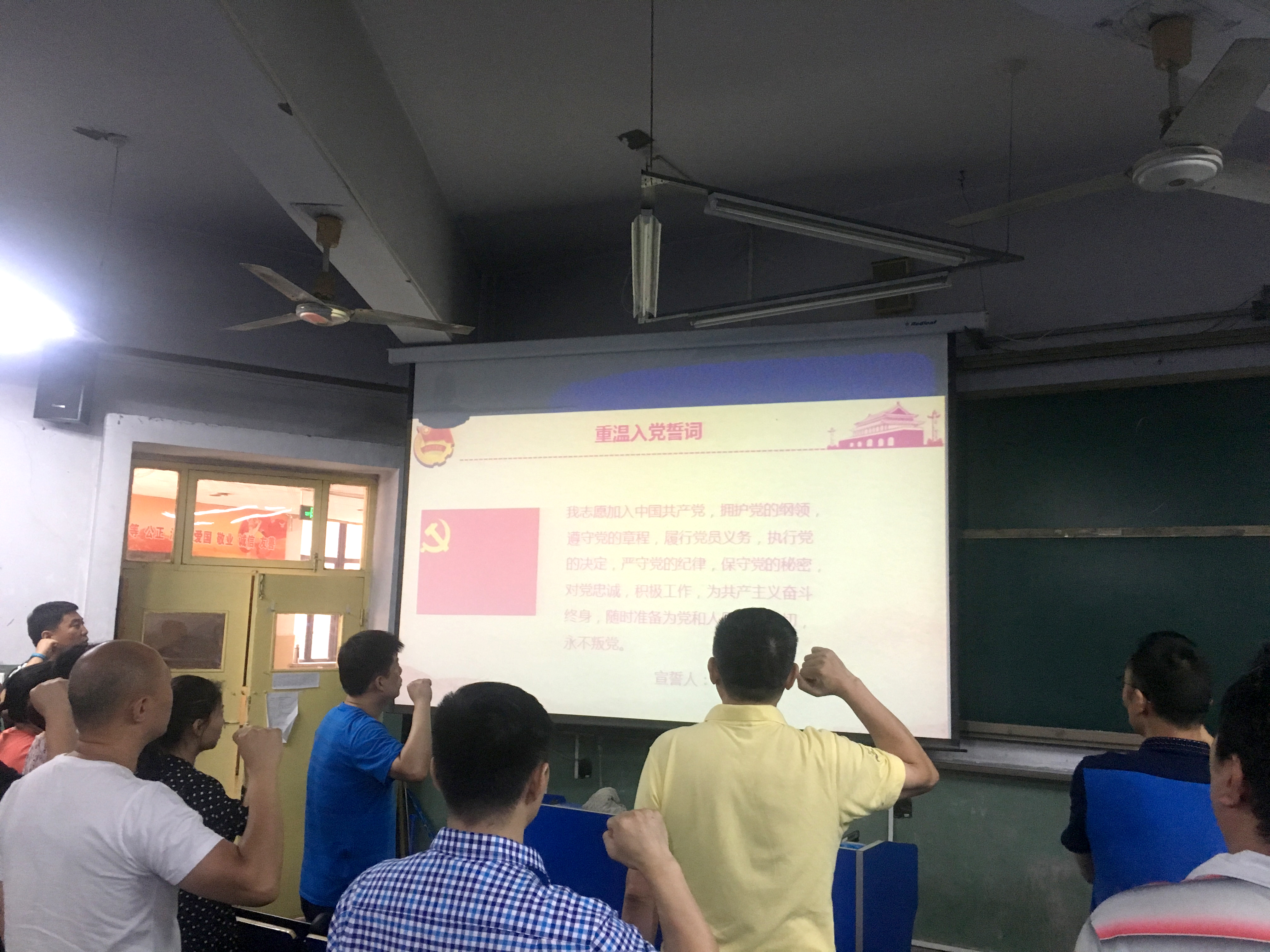 最后,陈剑勇副书记带领全体党员重温入党誓词。经过誓词宣誓的又一次洗礼,党员们进一步端正思想态度,纯洁入党动机,激励广大党员坚定理想信念,不忘入党初心,在工作生活中发挥先锋模范作用,以实际行动践行党员的职责、为党旗增光添彩。