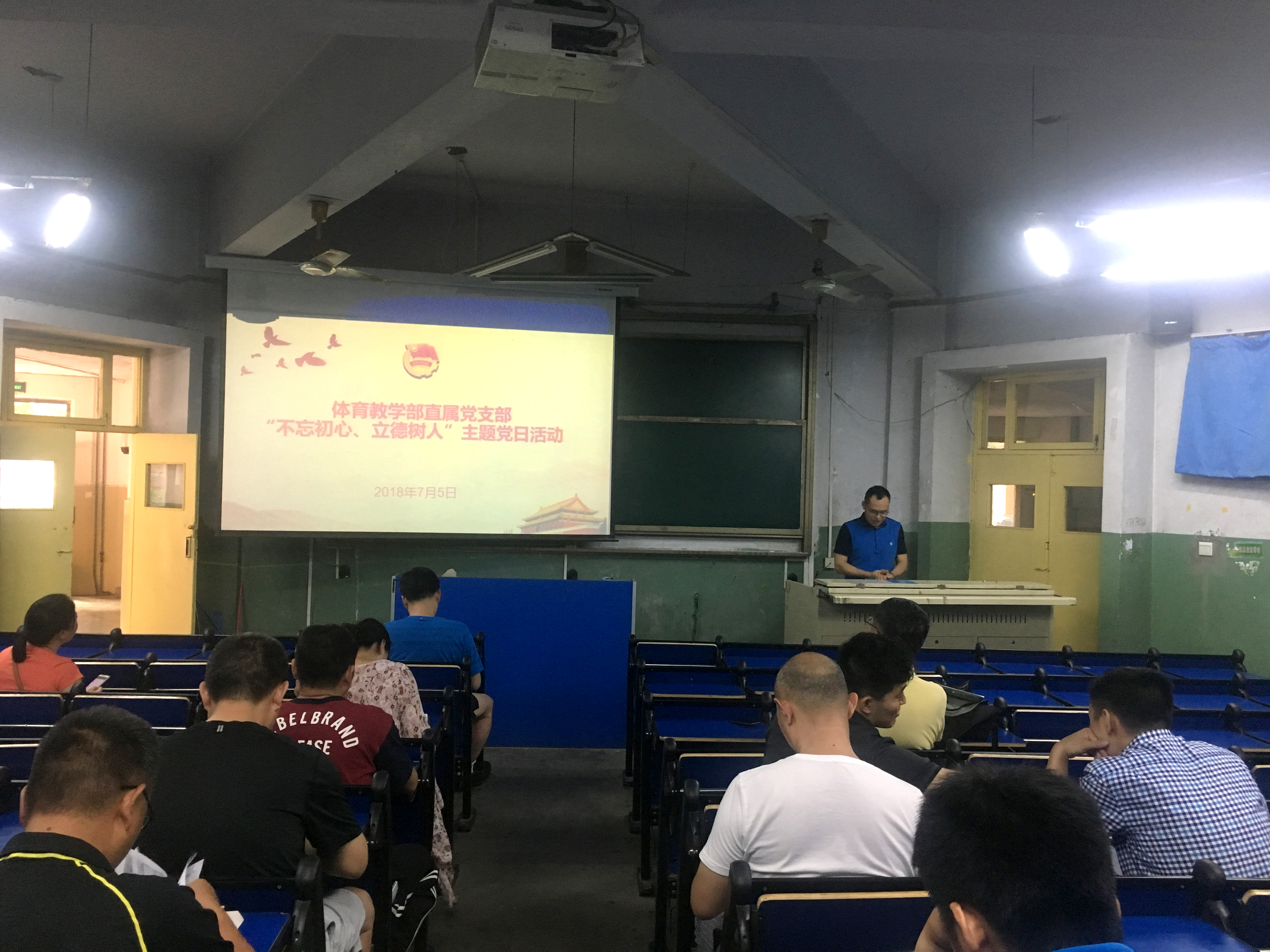 为深入学习贯彻习近平新时代中国特色社会主义思想和党的十九大精神,庆祝建党97周年,我支部在7月5日在中原校区开展体育教学部直属党支部“不忘初心、牢记使命”支部党日活动。活动由支部副书记陈剑勇主持。