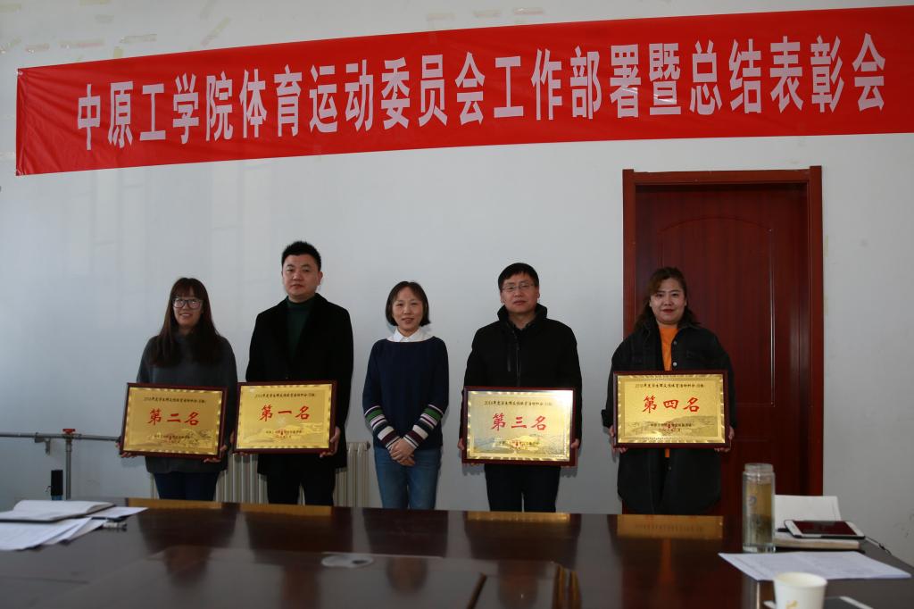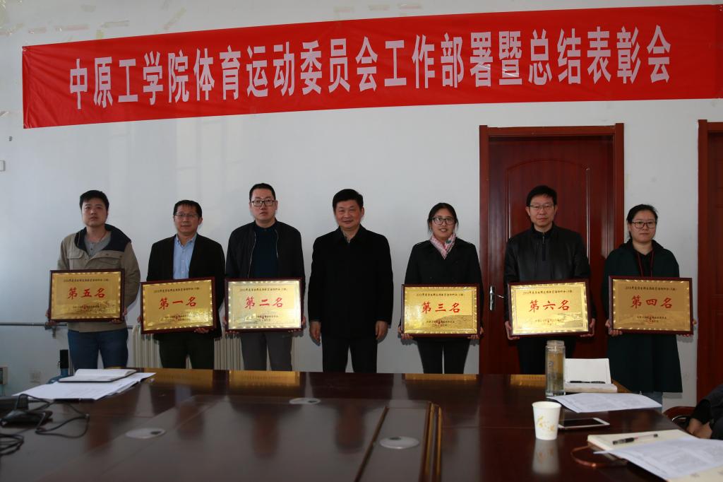 会上,williamhill英国魏建主任代表校体育运动委员会,从制度建设、体育教学、群体活动、竞训改革、社会服务等方面对我校2018年度体育工作进行总结,并从推进体育课程改革、创新群体活动载体、理顺竞训体制机制等方面介绍了我校2019年度的重点体育工作;并通报了我校2018年度各学院学生群体活动积分结果:建筑工程学院、纺织学院、计算机学院、材料与化工学院、艺术设计学院、理学院分获A组前六名;能源与环境学院、经济管理学院、国际教育学院、电子信息学院分获B组前四名。工会主席和曹健副校长分别为A、B两组获奖学院颁奖。
