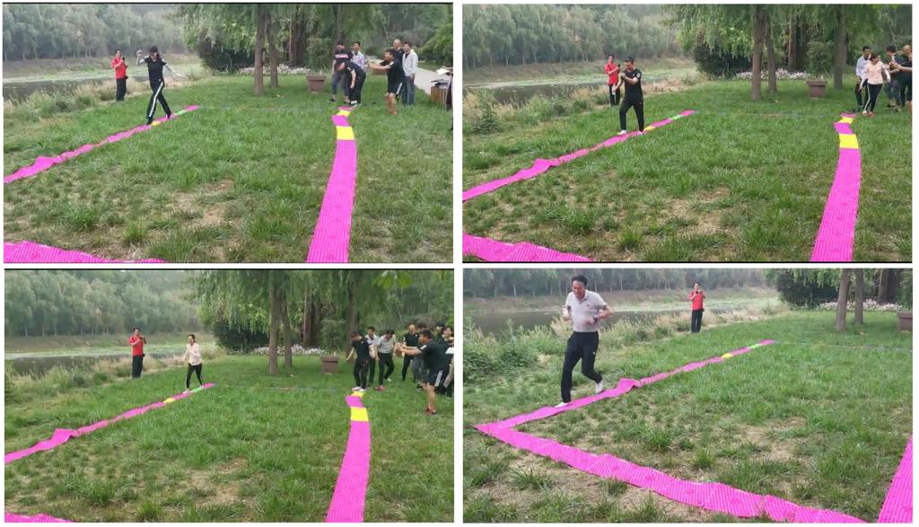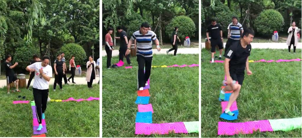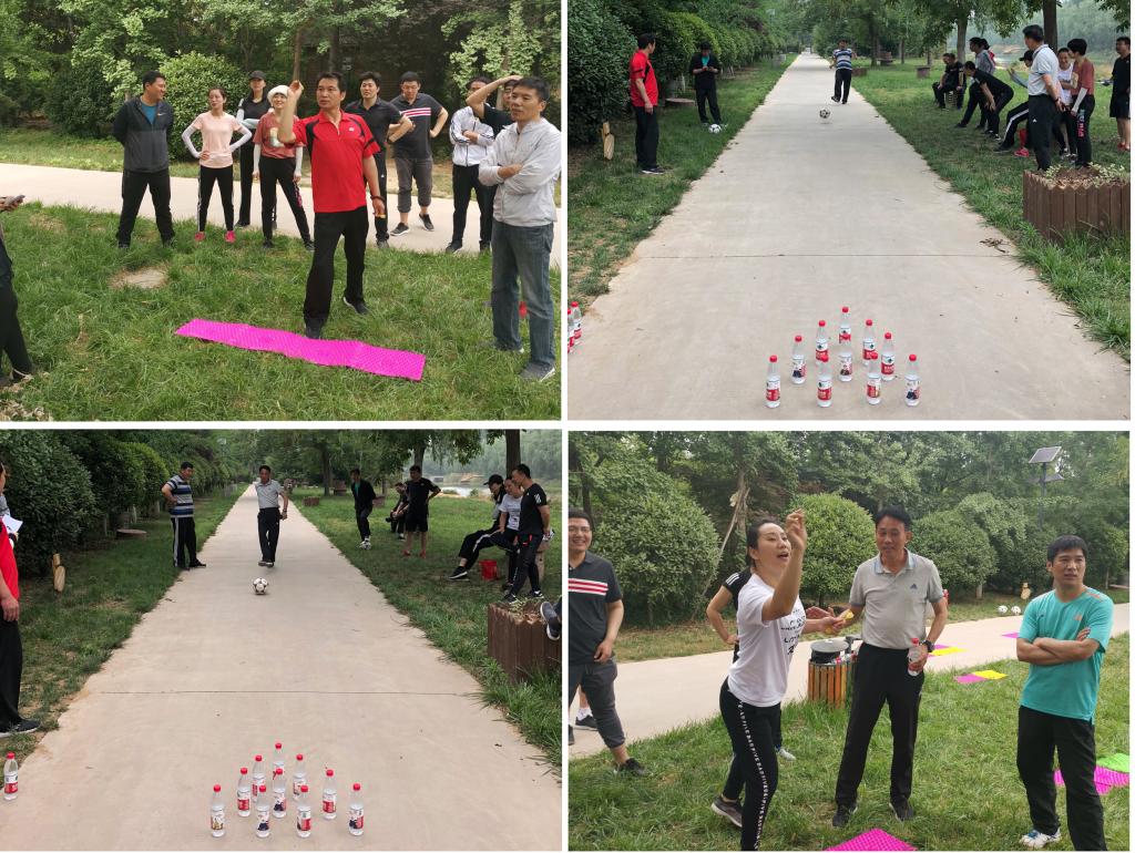 早上9:00,到达活动场地后,大家一起动手,将活动的装备安装、摆放到位。户外拓展活动分为红、黑两队对抗赛,共足式保龄球、分指压板接力跑、扔飞镖、指压板跳绳四个游戏。williamhill英国教职工经过抽签分队后,积极进行团队建设与分工安排,活动中大家相互鼓励、相互合作,友谊第一、比赛第二,有效的促进了williamhill英国教职工之间的沟通交流。