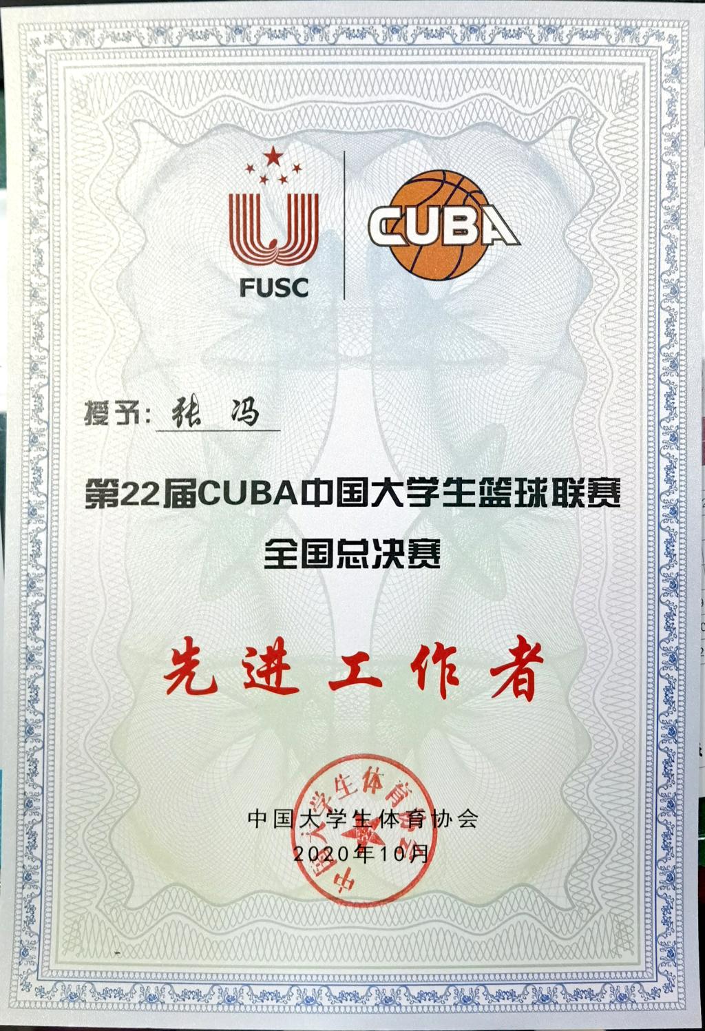 近日,我部门张冯老师被评为第22届中国大学生篮球联赛全国总决赛“先进工作者”。