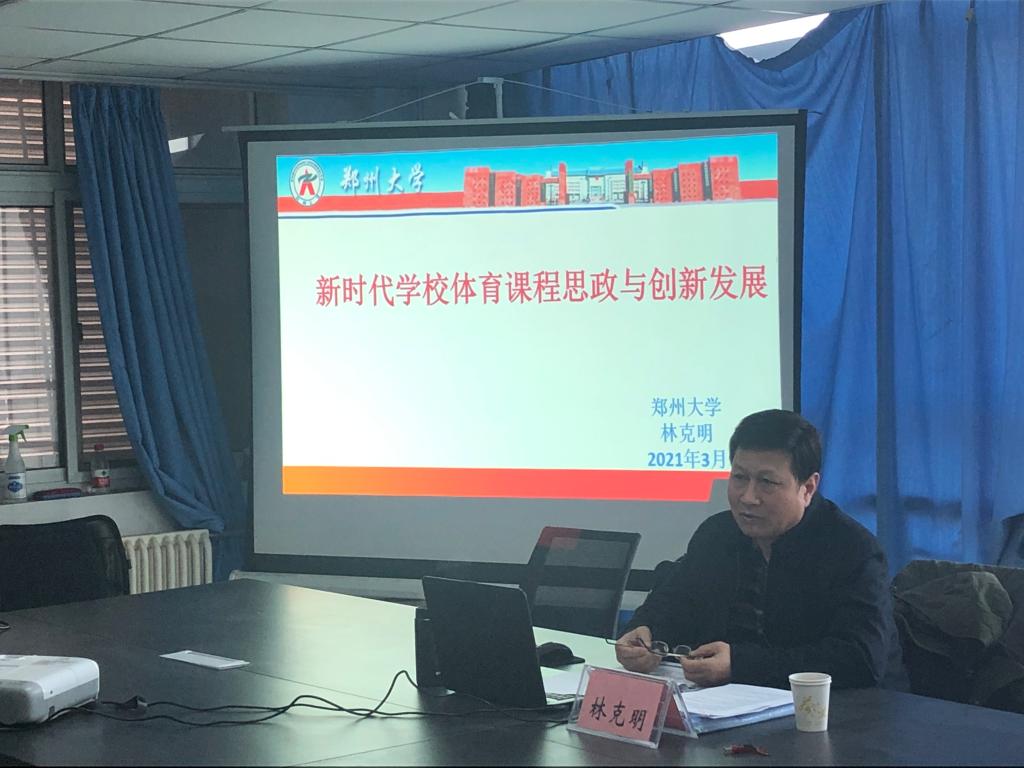 为深入学习贯彻中共中央 国务院《关于全面加强和改进新时代学校体育工作的意见》,落实立德树人根本任务,推进我校体育课程思政建设,提升体育教师课程思政建设能力,2021年3月9日下午,应williamhill英国邀请,郑州大学体育学院(校本部)体育与健康研究院院长林克明教授以“新时代高校体育课程思政相关问题研究探讨”为主题做学术报告。报告在龙湖校区镇泰楼214会议室举行,由williamhill英国主任魏建主持,williamhill英国全体教职工参加。