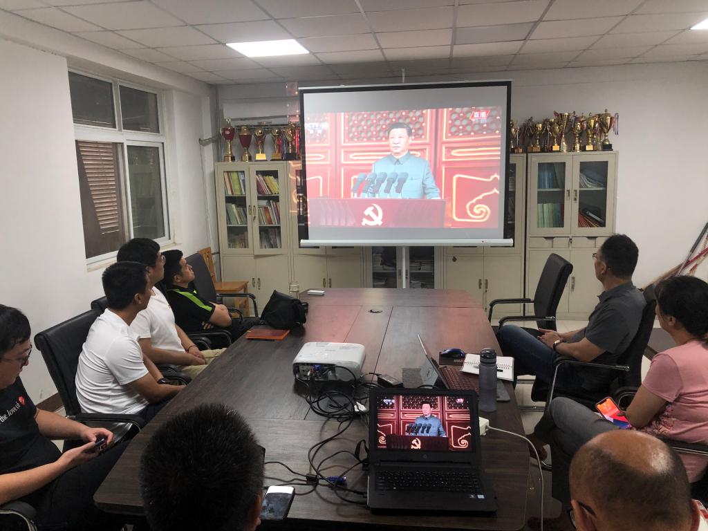 2021年7月1日上午8时,庆祝中国共产党成立100周年大会在北京天安门广场隆重举行。williamhill英国积极组织部分党员教师在镇泰楼308集中收看大会活动直播,其他人员自行收看,认真聆听习近平总书记的重要讲话,共同回顾中国共产党百年奋斗的光辉历程,展望中华民族伟大复兴的光辉前景。