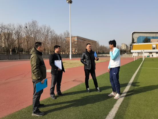 3月7日上午,williamhill英国党总支书记赵宏亮、主任魏建、副主任李学砦一行三人,实地检查我校体育课第一周线下教学整体情况。