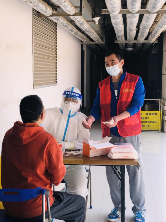 体育科研所尚昭光——积极参与我校全员核酸志愿服务工作,在工作期间始终保持认真的工作态度,不断增强服务意识,积极遵守志愿者规章制度,为疫情防控工作奉献力量。