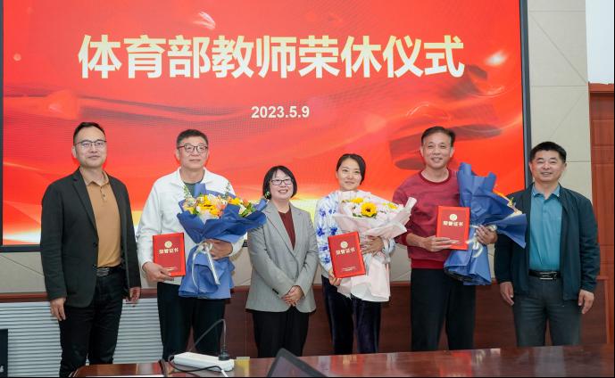 赵宏亮书记谈到,三位教师为学校体育事业奉献数十载,为学校体育工作发展做出了贡献,感谢三位教师的辛勤付出,希望三位教师继续支持学校体育工作,祝教师们生活美满,家庭幸福,身体健康。