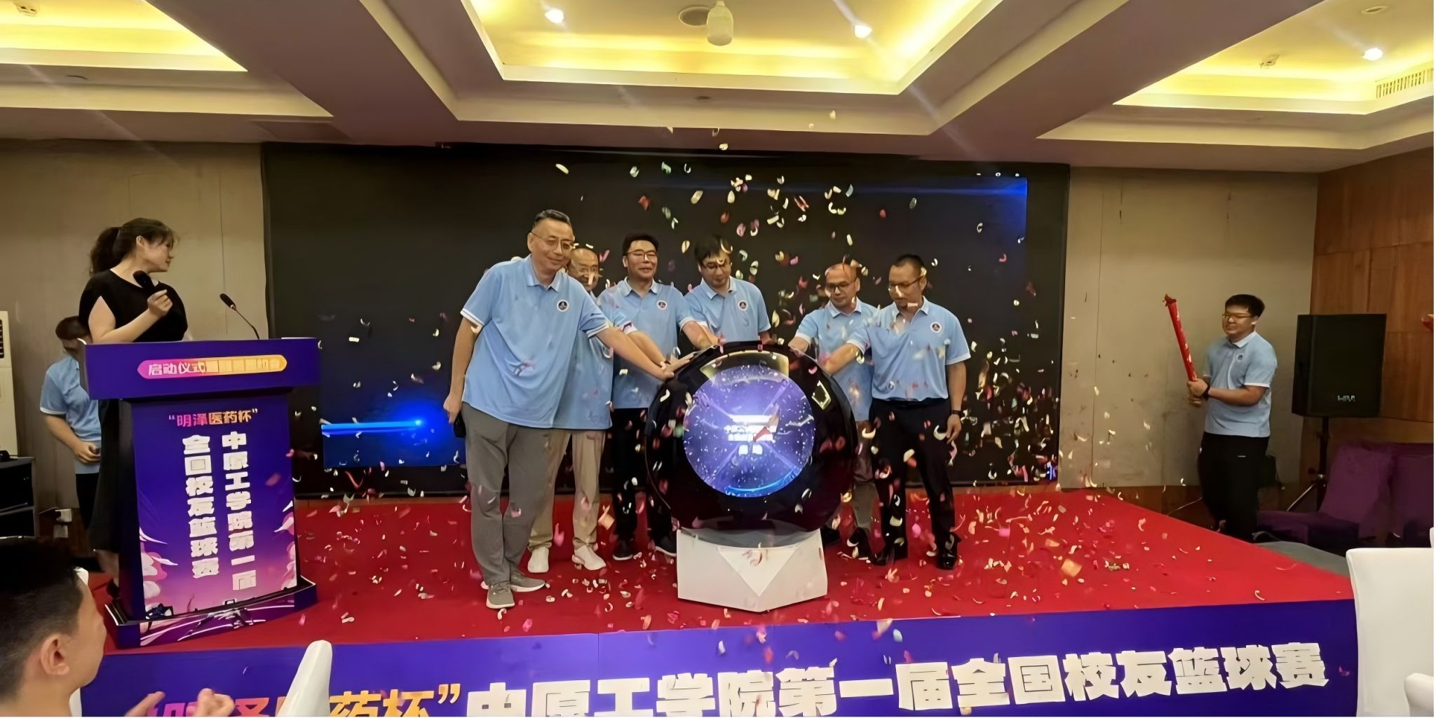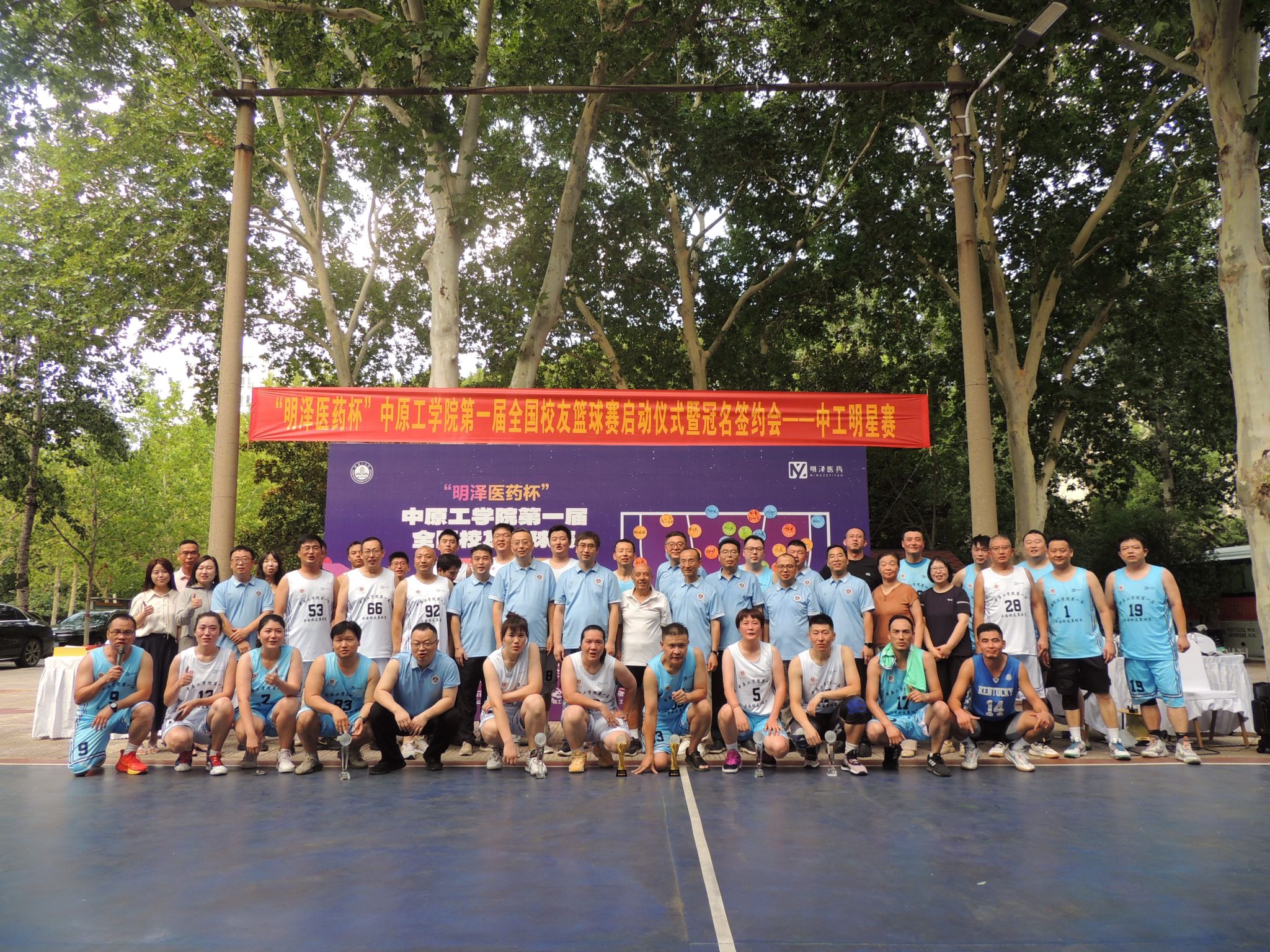 盛夏八月,阳光正好。8月2日,由英国威廉集团校友总会主办、郑州校友会承办的“明泽医药杯”首届全国校友篮球赛启动仪式暨冠名签约会在中原校区举行。副校长杨坤出席活动,来自全国各地校友代表、篮球爱好者齐聚一堂,共襄盛举。