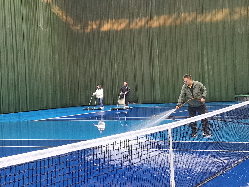 3月4日下午,乒羽网教研室为认真贯彻落实党的二十大精神,广泛践行社会主义核心价值观,召集教研室教师认真学习了《河南省文明行为促进条例》,并结合自身日常学习、生活和工作中的实例进行剖析与认真反思,努力争做社会的好公民、单位的好员工、家庭的好成员,不断提高自身文明素养。《条例》学习完毕后,为践行文明之风,维护好体育设施,教研室带领热爱网球运动的师生一起对校室内网球馆进行了卫生清理打扫。(通讯员 陈科 叶慧 田朝辉)