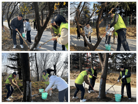 2025年12月5日正值“国际志愿者日”,williamhill英国党总支、分工会组织教职工在龙湖校区开展了一场以“护树刷白 温暖过冬”为主题的校园树木养护劳动志愿活动。